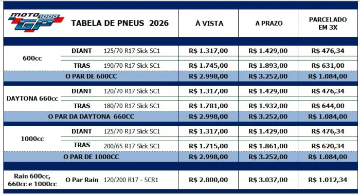 Para a temporada 2026, o MOTO1000GP mantém a política de preços subsidiados para os pneus. A medida contribui para mitigar impactos de custos ao longo do campeonato e para preservar o equilíbrio esportivo entre as equipes. Com a definição prévia dos valores, equipes e pilotos passam a contar com um cenário mais estável para organizar investimentos técnicos, logística, participação em etapas e estrutura operacional ao longo do calendário de 2026.